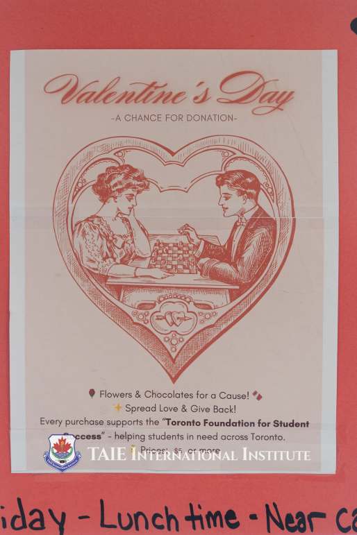 febrero 18 El pasado viernes, la energía en TAIE fue eléctrica mientras celebrábamos el Día de San Valentín de una manera que realmente marcó la diferencia. El campus estaba lleno de creatividad: los estudiantes decoraron el espacio con adornos vibrantes, mensajes sinceros y obras de arte inspiradoras, convirtiendo cada rincón en una celebración de conexión y calidez. Pero la verdadera magia ocurrió cuando nuestros estudiantes tomaron acción. Organizaron un puesto de flores temporal, vendiendo rosas para recaudar fondos para la Fundación de Éxito Estudiantil de Toronto. Su arduo trabajo apoyará directamente a los estudiantes necesitados en Toronto, demostrando que los pequeños gestos pueden generar grandes cambios. Por supuesto, ¡ninguna celebración está completa sin un toque de dulzura! El algodón de azúcar y las fresas cubiertas de chocolate le dieron un toque festivo, dejando a todos con sonrisas en el rostro. En TAIE, estamos comprometidos con más que solo lo académico. Estamos formando estudiantes que no solo destacan en el aula, sino que también entienden la importancia de la compasión, la comunidad y de retribuir. A través de experiencias como esta, les damos las herramientas y los valores necesarios para tener un impacto real en el mundo.