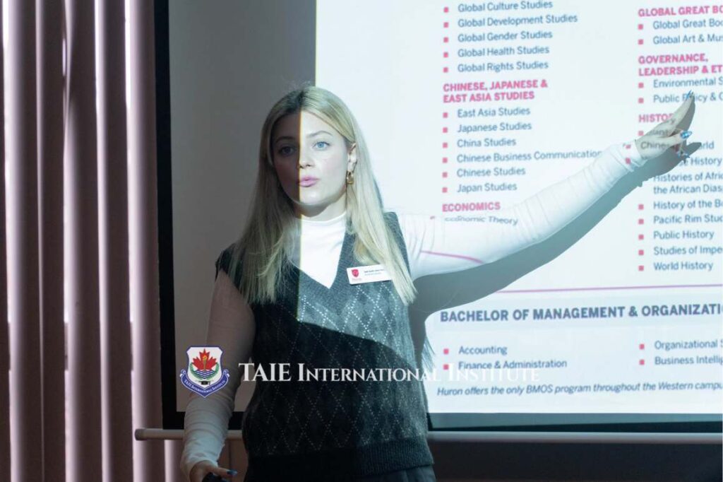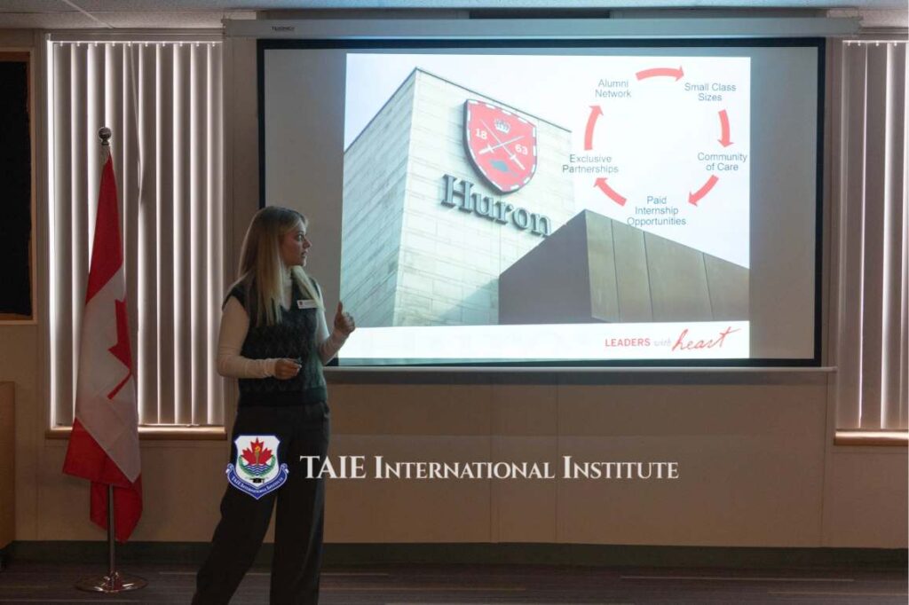 February 6 We were thrilled to host a representative from Huron University College for an insightful session with our students! This event reinforced our dedication to providing diverse pathways to higher education, equipping students with valuable knowledge about the unique strengths of studying at Huron University, and empowering them to make confident academic decisions for their futures. About Huron University College Located in London, Ontario, Huron University College is a prestigious institution known for its strong liberal arts education and emphasis on leadership development. Offering a wide range of undergraduate programs in business, social sciences, humanities, and more, Huron University College provides students with a well-rounded academic experience that prepares them for success in various professional fields. Huron University College is committed to fostering experiential learning, mentorship opportunities, and global engagement, with options for internships, co-op programs, and international exchanges. With a close-knit campus community, small class sizes, and a focus on ethical leadership, Huron University College empowers students to think critically, lead with integrity, and create meaningful change in the world. At TAIE, we take pride in creating opportunities like this, ensuring our students are well-prepared to achieve their goals and thrive on a global stage!