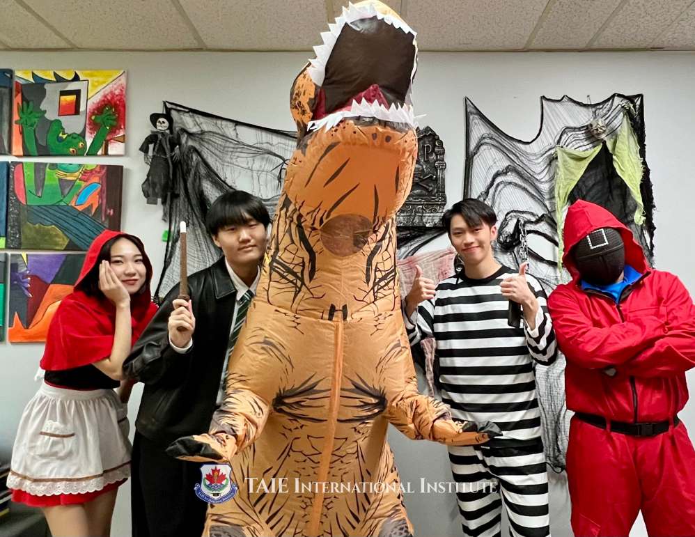 5 12 月 乱穿衣的时候到了,无论你是鬼点子多的小鬼头,还是成熟稳重的造型达人,万圣节绝对是大展拳脚的节日。 虽然每年的11月1日是万圣节,但最热闹的却是10月31日的万圣夜。当晚会有很多人穿上各种妖魔鬼怪造型的衣服,小朋友会戴着面具,挨家挨户收集糖果,非常有意思。 万圣节狂欢之夜 氛围感是万圣节最不能缺少的,无论大街小巷,还是校园内,在多伦多市中心这,达英国际学院作为加拿大当地的私立高中,每年万圣节都准备得非常充足。 校园里从走廊到教室,各个区域,窗户、墙上都可以见到万圣节的元素。另外最不能缺少的元素就是各式各样的鬼和南瓜灯了。其中杰克南瓜灯就是万圣夜的标志之一。通常以南瓜雕成一个有盖子和洞的灯笼,洞的图案通常是像怪物般的脸,在万圣夜的时候放进点燃的蜡烛。 万圣狂杰克灯 传说在爱尔兰,一名叫杰克Jack的男子,死后天堂不收他,因为他非常吝啬,地狱也因为他戏弄撒旦而拒绝他。于是他只能提着白萝卜,里面放着撒旦给的炭火来照亮道路,找一个地方休息。 后来苏格兰人模仿他的传说挖空白萝卜放入蜡烛,爱尔兰人用白萝卜或马铃薯,英格兰人则用甜菜。后来移民到美国的人,将本来用于庆祝丰收的雕刻南瓜,改为杰克南瓜灯,因为南瓜比较大而且容易在上面雕刻图案。不少家庭在南瓜上凿刻吓人的面容,并放在大门口的阶梯上,意在驱走恶魔与妖怪。 最热闹的万圣节前夜,达英的学生、老师们为了庆祝今年的万圣节穿上了各种各样的衣服。 达英的老师们准备了各色的小吃,万圣节就连食物都有了不一样的味道。边吃边玩,还有比赛可以看,这样的节日来一打。其实服装比赛是每年万圣节大家最喜欢的环节,在众多优秀的造型达人之中,评选出最佳服装设计造型的人。 想不想知道最佳获胜者是谁,请继续关注我们,下回将公布这场年度服装比赛的获胜者! 最后祝大家万圣节快乐 (*^▽^*)!!