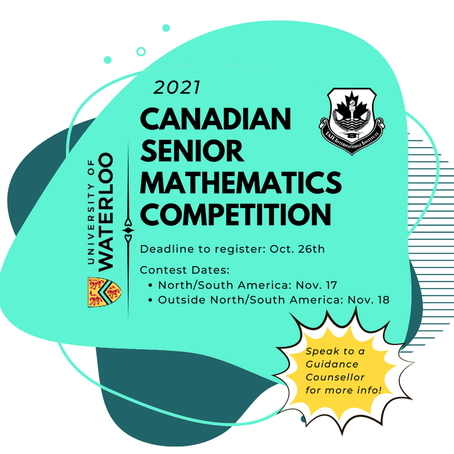 28 6 月 地址:https://cemc.uwaterloo.ca/contests/csimc.html 滑铁卢大学 University of Waterloo 拥有加拿大的最大的工程学院,是北美地区最优大学之一,其数学、计算机科学和工程学科教学及研究水平居世界前列,是U15大学联盟成员。 CIMC 滑铁卢大学中级数学竞赛,全称 Canadian and Intermediate Mathematics Contest CSMC 滑铁卢大学高级数学竞赛,全称 Canadian Senior Mathematics Contests Waterloo 系列数学竞赛是一个覆盖从7年级–12年级的全系列数学竞赛. 又叫加拿大数学竞赛— Canadian Mathematics Competition. 显见这是加拿大的官方数学竞赛。而且这一数学专业的领军者创办国际数学竞赛迄今已经57年的历史了。悠久的历程中,累计了世界各地参赛者将近23万名学生。这是一个鼓励学生运用数学方法来探究、解决问题,感受数学的学科魅力,激发学习数学乐趣的竞赛。 达英国际学院鼓励学生积极参与 达英国际学院历年来一直都鼓励学生积极参与这些竞赛,因为参加滑铁卢大学系列数学竞赛比赛的经历和成绩均被加拿大、美国等国家的多所高等学校认可,更重要的是,滑铁卢大学可能会从获奖者中选取部分学生直接录取并授予全额奖学金。最后无论是否获得荣耀,这都是不可多得经历,对学生自身的发展绝对大有裨益。 往年数学竞赛获奖者 2021年的竞赛就要来临了,感兴趣的同学可要积极准备了。无论你身处加拿大,还是在其他国家,都有资格注册。中级数学竞赛 面相9-10年级学生,高级数学竞赛面相11-12年级学生。想报名了解的可以找顾问老师或着 Mr. Klein 老师。 报名截止:2021年10月26日 CIMC 考试时间:2021年11月18日 CSMC 考试时间:2021年11月17日 竞赛资讯 竞赛形式 1. 竞赛题型:9个题目,6个题目要求只写出答案,3个题目要求写出完整的解答过程。 【注:全解题的分值是根据表述形式和风格而定的。】 2. 竞赛时长:120分钟 3. 竞赛分数:总分60分 4. 竞赛要求:学生在竞赛时可以使用计算器计算结果,但有以下功能计算器则不可使用: • 有上网功能; • 与其他设备通信的功能; • 有储存记忆功能的计算器,如储存的公式,程序,笔记等; • 有计算机代数系统; • 有动态几何软件; • 不可使用的计算器比如卡西欧类的300系列,HP Prime和TI-Nspire CAS等。 竞赛准备 1. 往年的考卷; 2. CEMC官方出版物; 3. 来自滑铁卢大学Math Circles的每周分享; 4. CEMC官网上的其它资源 5. 参加CSMC的学生可以利用12年级开放课件中的资源 【地址:courseware.cemc.uwaterloo.ca】 奖项设置 CIMC和CSMC的奖项都于网上公布。 1. 个人奖项 • 在所有参赛者中得分在前25%的学生将获得优秀证书; • 在参赛学校成绩为首将获得一枚比赛奖章; • 一些得分最高的加拿大学校参赛选手的名字会出现在地区、省和加拿大的荣誉名单上; • 部分得分最高的国际学校参赛选手的名字出现在国际荣誉名单上; • 排名前五名的加拿大学校参赛者将获得一块奖牌,并获得相对应的奖金。CISC奖金300加币和CSMC奖金500加币。 2. 团队奖 一所学校的团体成绩由其得分最高的五名正式参赛选手的分数之和组成。学校可以选择不参加团体赛。 • 对于加拿大的学校来说,排名和团队荣誉榜分为三个级别:地区、省和国家; • 根据分数评出加拿大国家冠军、省冠军和地区冠军; • 对于加拿大以外的学校,提供排名和团队荣誉榜。